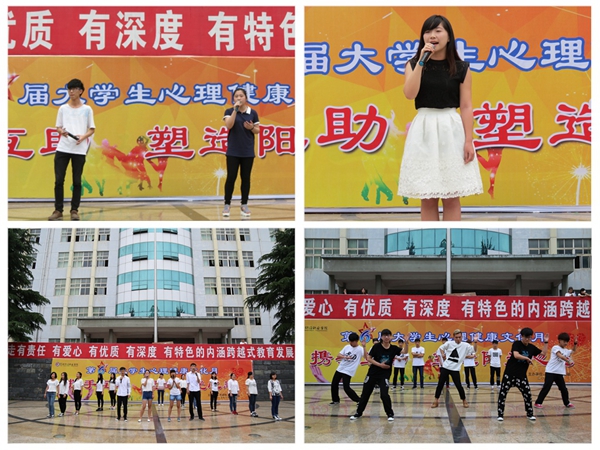 为秉承学院“务实、责任、合力”的精神,落实“五有”教育观,培养“四具备”人才,推动“四导”服务工作,深化“心理疏导”,加强校园文化建设,促进学生的心灵成长,同时也为了更好地迎接“5.25”大学生心理健康日的到来,5月7日下午4:30,由思政部、基础部主办的“携手互助·塑造阳光心态”第六届大学生心理健康文化月开幕式在院文化广场隆重举行。